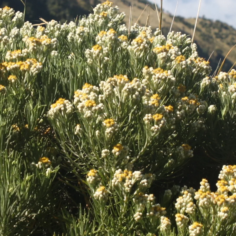 Az ezüstös gyöngykosárka (Anaphalis triplinervis) egy különleges, szárazságtűrő évelő keskeny, szürkés levelekkel és sok apró fészekvirágzattal.